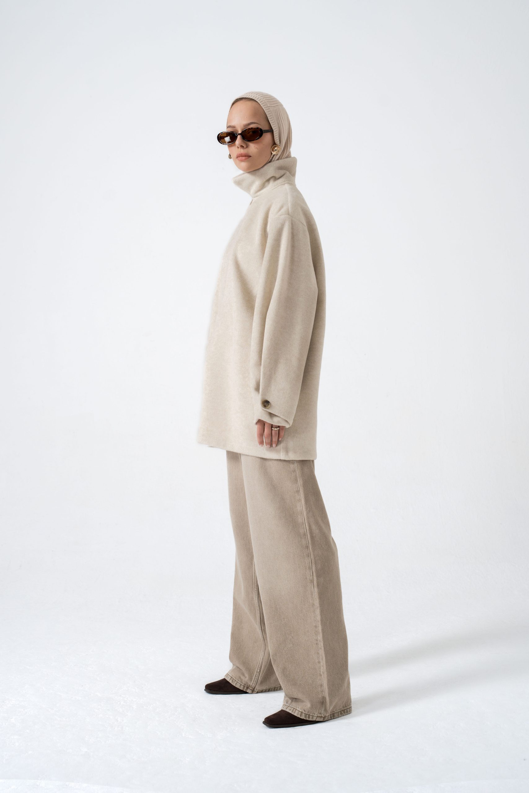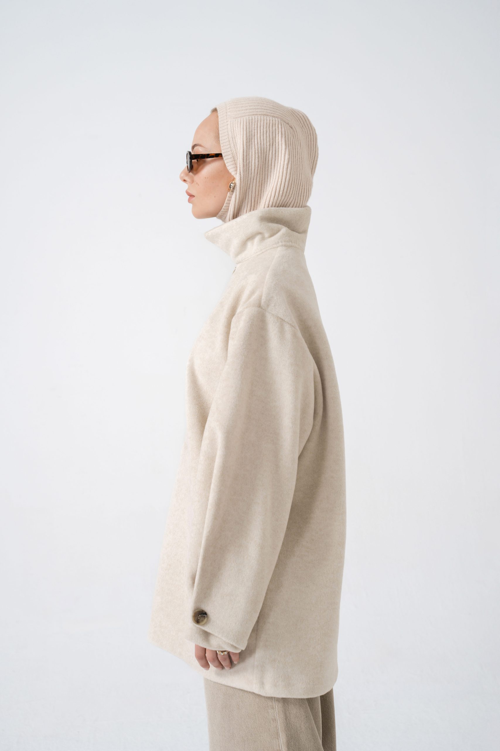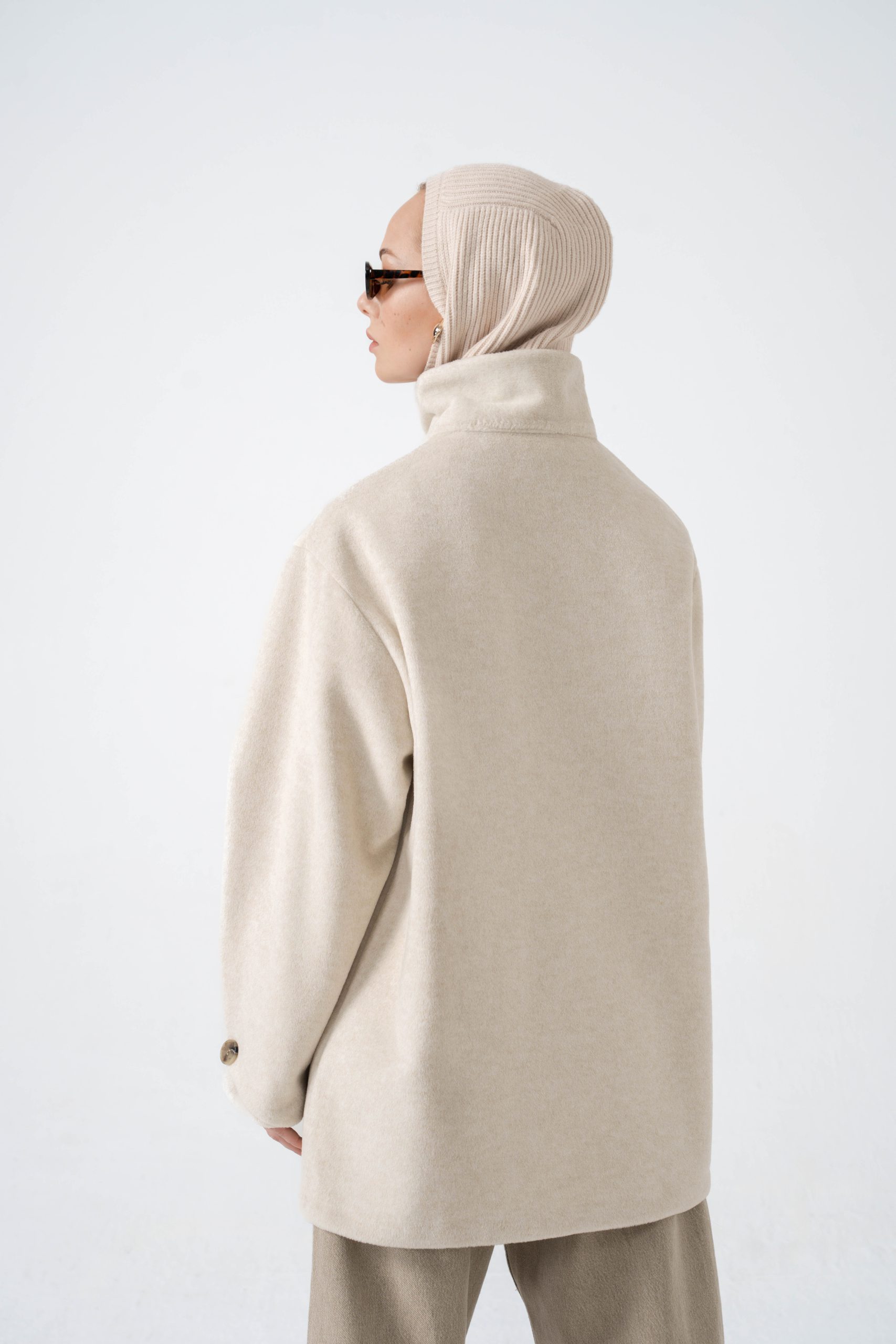Collar: Versatile design (turtleneck or open collar)