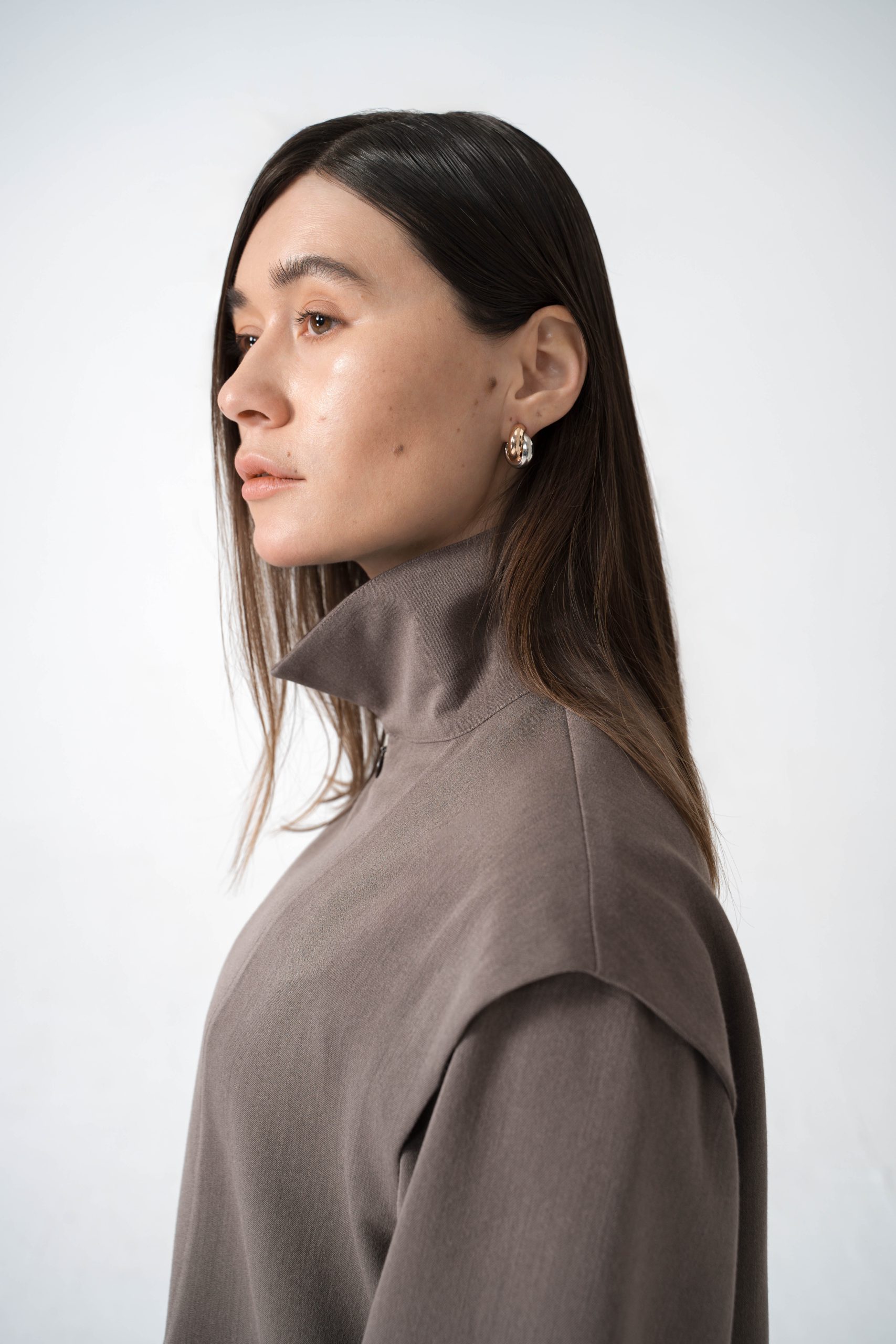 Details: Hidden zipper, versatile collar, shaped shoulders and sleeves